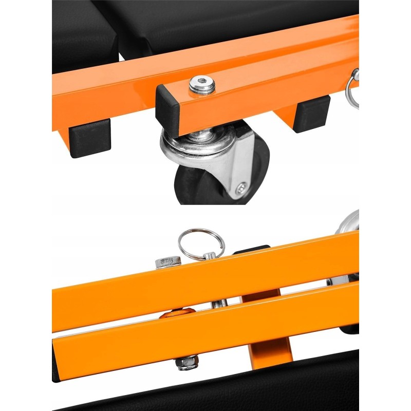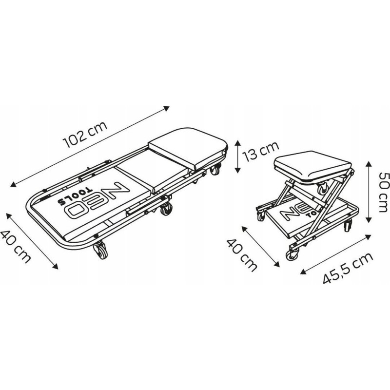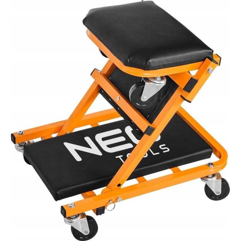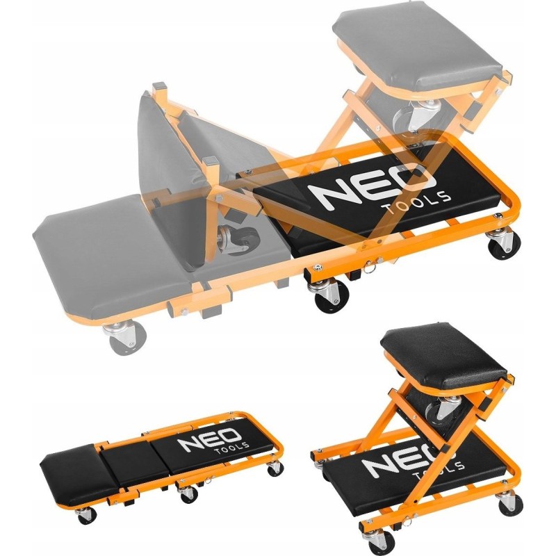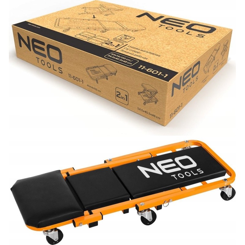Das Produkt der Marke NEO ermöglicht effizientes Arbeiten unter dem Fahrzeug, erleichtert Werkstattarbeiten und richtet sich an Personen, die an Kraftfahrzeugen arbeiten.