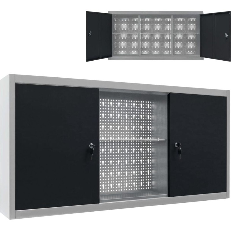 vidaXL Wand-Werkzeugschrank, Metall, grau-schwarz