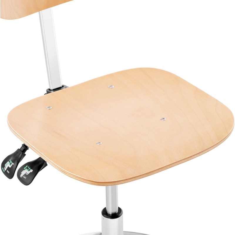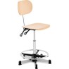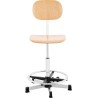 FROMM&STARCK Werkstatt-Arbeitsstuhl mit Rückenlehne und Fußstütze aus Sperrholz, CHROM, bis 120 kg, 550–800 mm