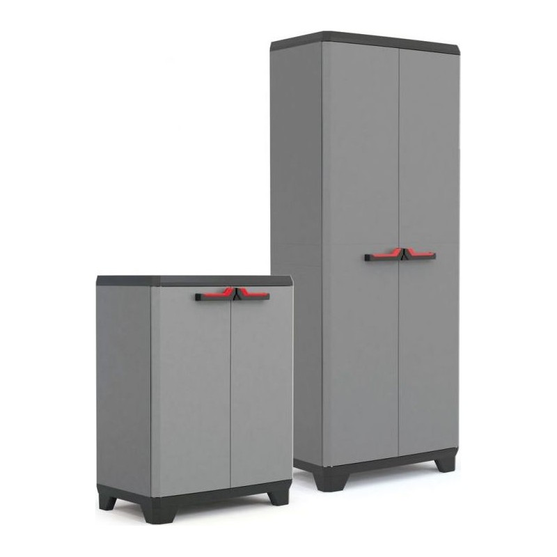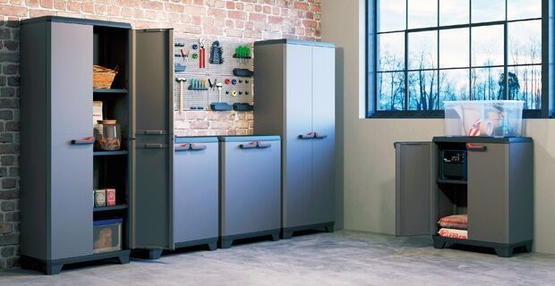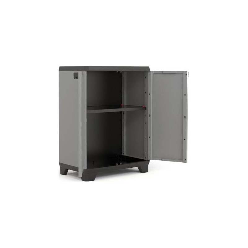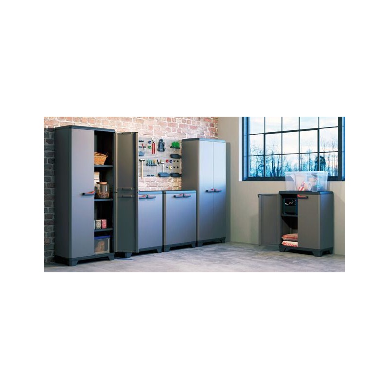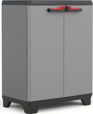 Der Schrank ist ein großartiger Helfer beim Ordnen verschiedener Dinge. – Im Inneren des Schranks befinden sich Einlegeböden, die beliebig angeordnet werden können. – Die Tragkraft jedes Einlegebodens beträgt bis zu 15 kg. Die Montage des Schranks durch Fachfirmen dauert etwa zehn Minuten. Der Schrank ist mit einer festen Öse zur Befestigung des Verschlusses ausgestattet. Ideal für die Aufstellung in der Werkstatt, Garage oder im Keller. Technische Daten: Produkthöhe: 90 cm Produktbreite: 68 cm Produktlänge: 39 cm Belastbarkeit: 15 kg (pro Einlegeboden) Material: Kunststoff Farbe: Grau Lieferumfang: 1x Schrank STILO LOW