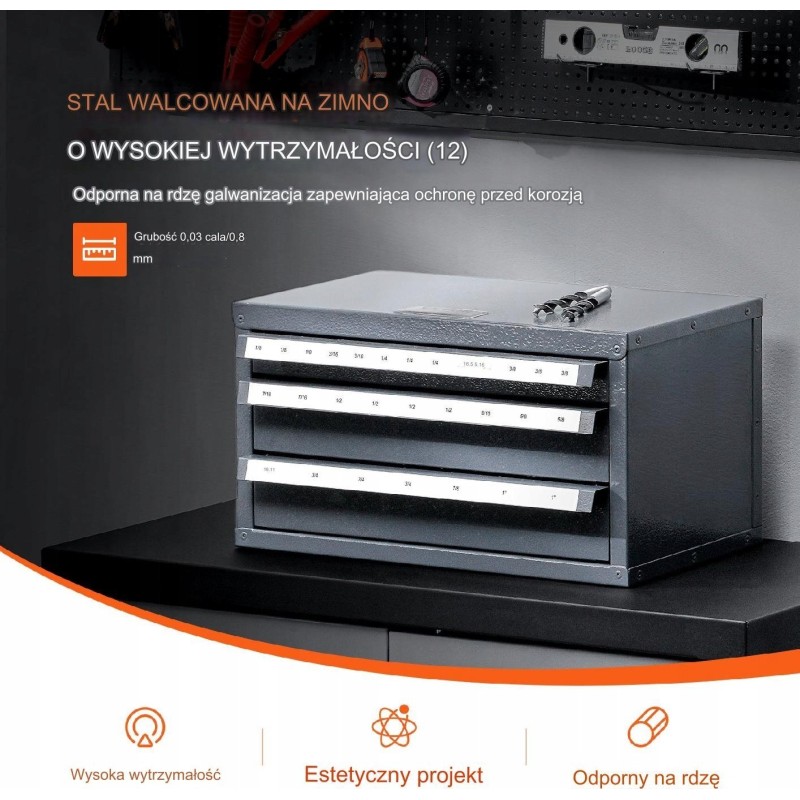 Schrank für Schaftfräser, 3 Schubladen, 29 Fächer