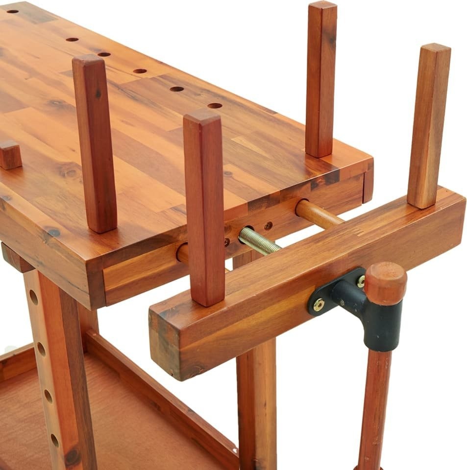 Dieser Werkbanktisch aus Holz eignet sich dank seines stabilen und robusten Rahmens ideal für alle Arbeiten in der Garage, Werkstatt oder im Schuppen.