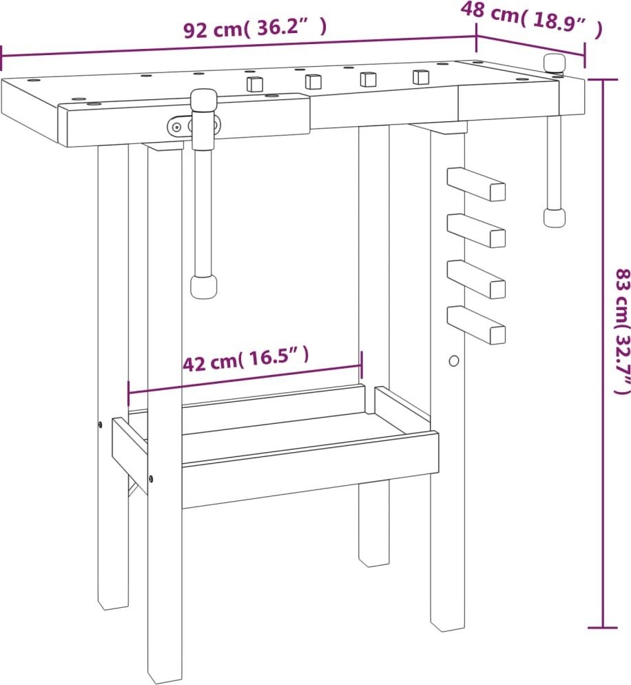 vidaXL vidaXL Arbeitstisch mit Schraubstöcken, 92 x 48 x 83 cm, Akazienholz