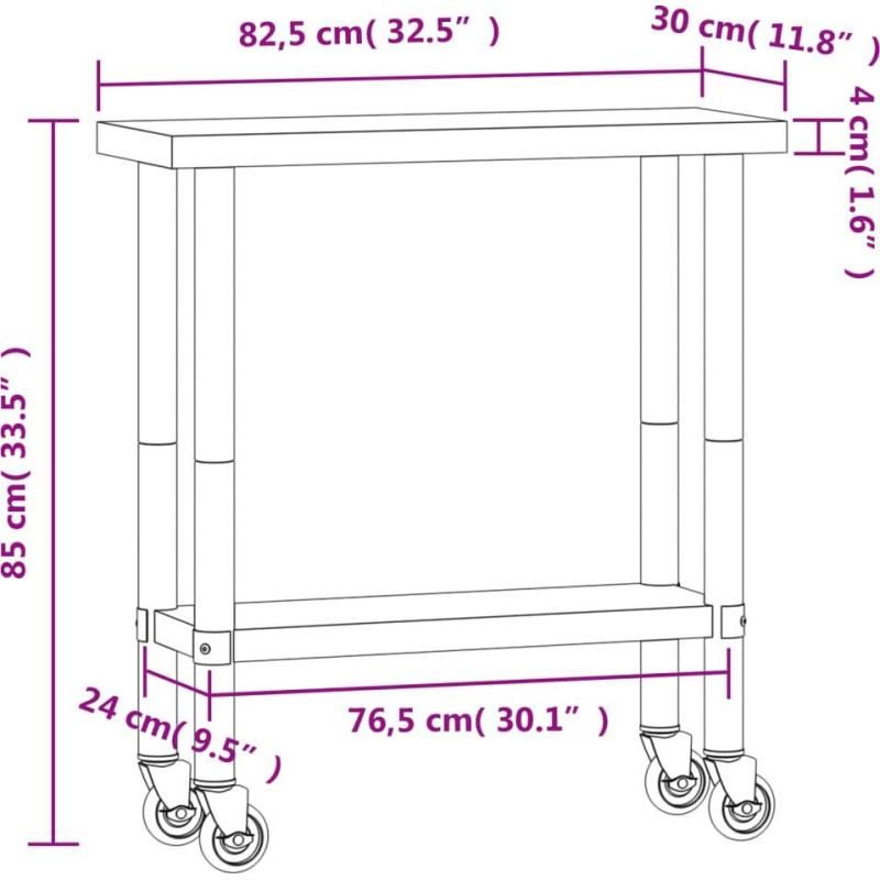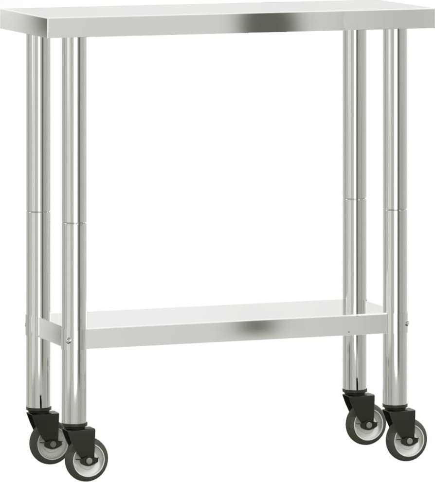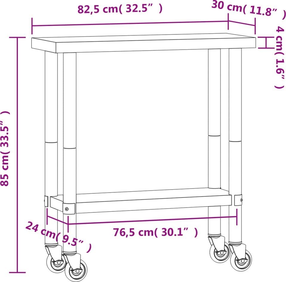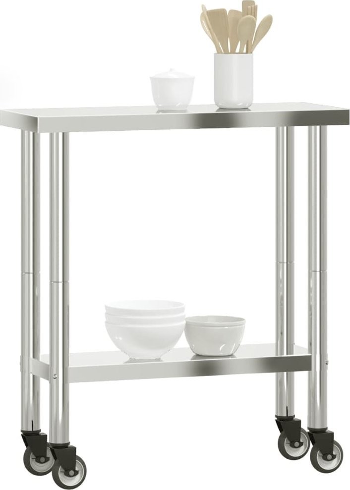 vidaXL Küchenarbeitstisch auf Rollen 82,5 x 30 x 85 cm, Edelstahl