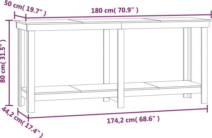 • Maße: 180 x 50 x 80 cm (B x T x H)