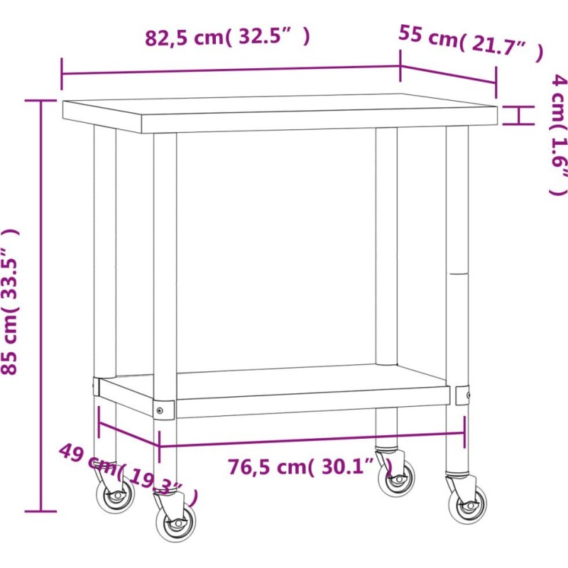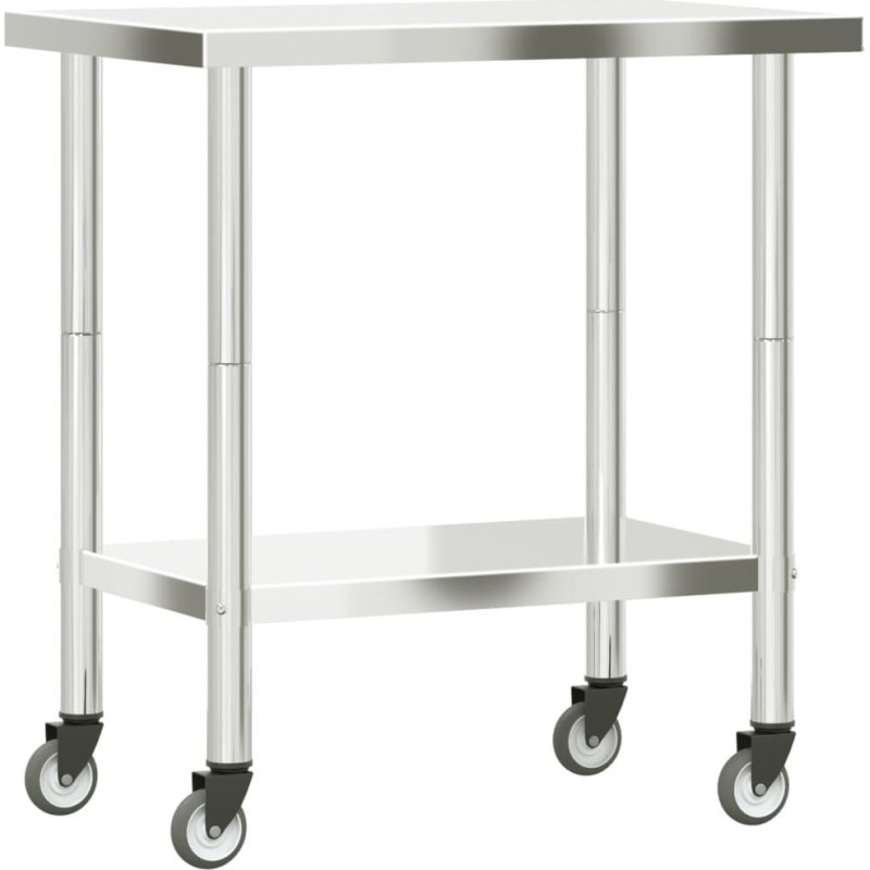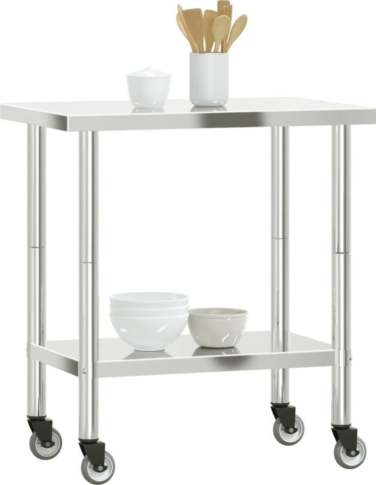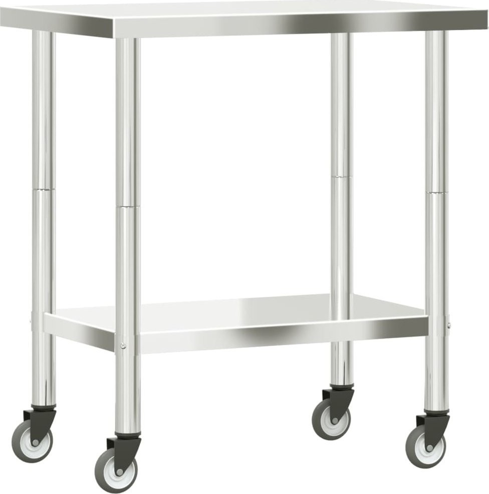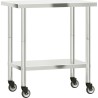vidaXL Küchenarbeitstisch auf Rollen 82,5 x 55 x 85 cm, Edelstahl