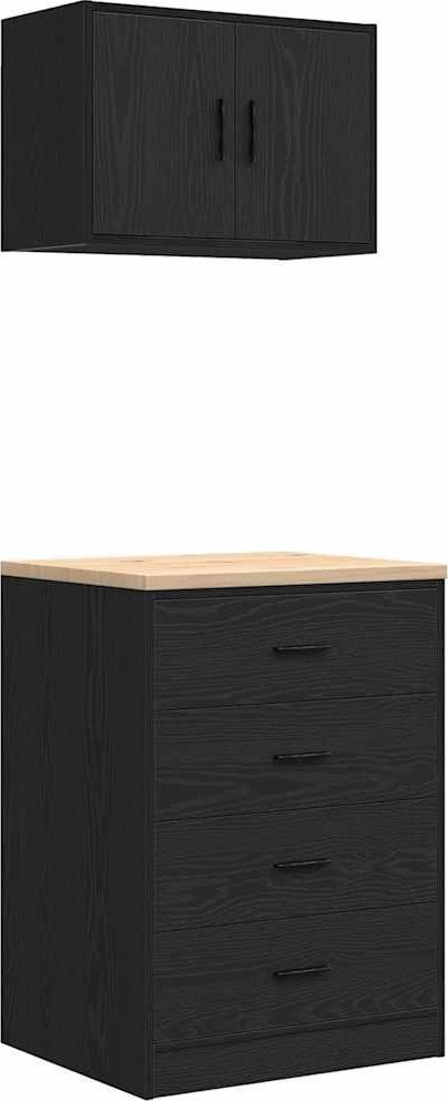 Garagenschränke, 2 Stück, schwarzes Leimholz