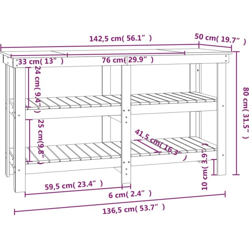 • Viel Stauraum: Dieser Arbeitstisch mit Regalen bietet viel Platz zum Aufbewahren und Ordnen Ihrer Werkzeuge, sodass diese leicht zugänglich sind.