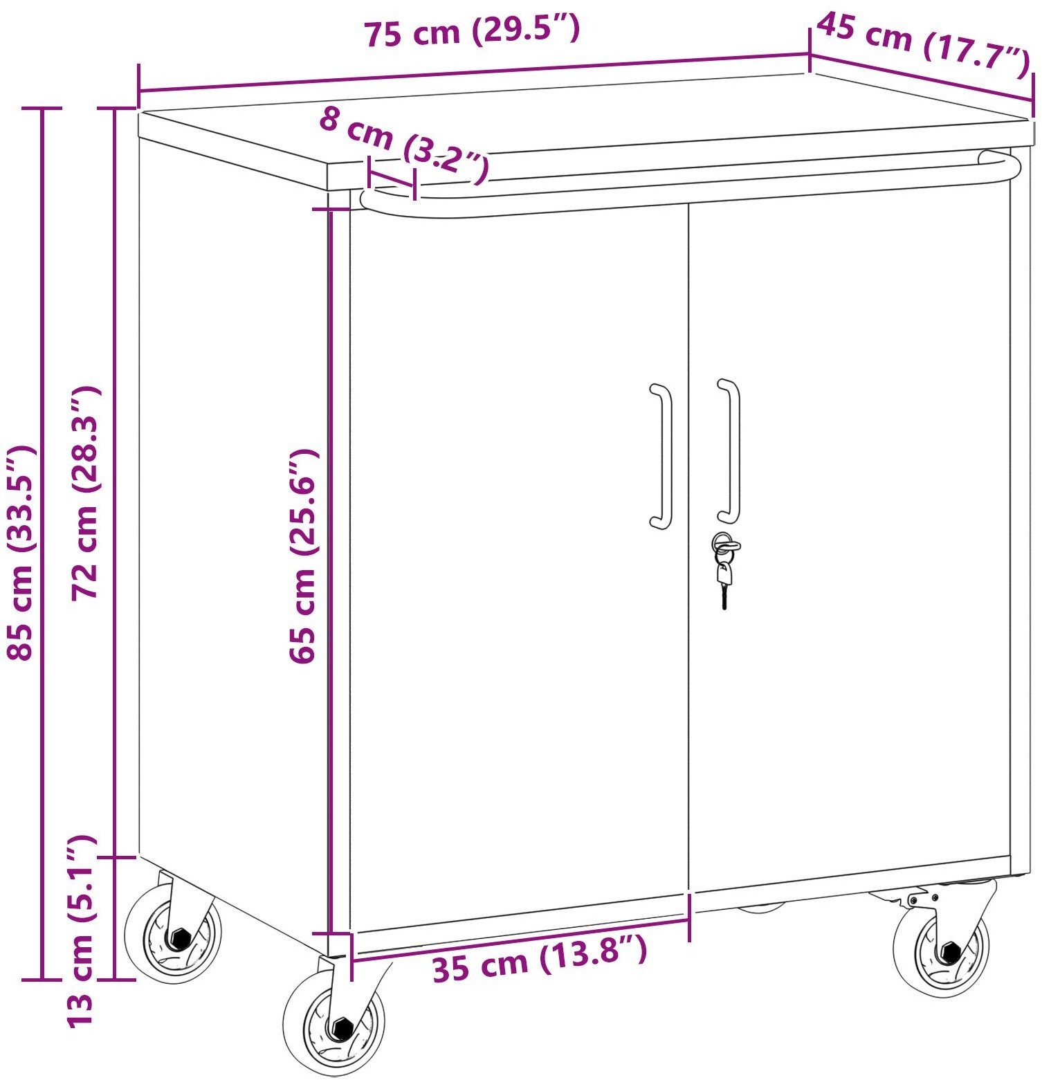• Abmessungen: 45 x 75 x 85 cm (B x L x H)