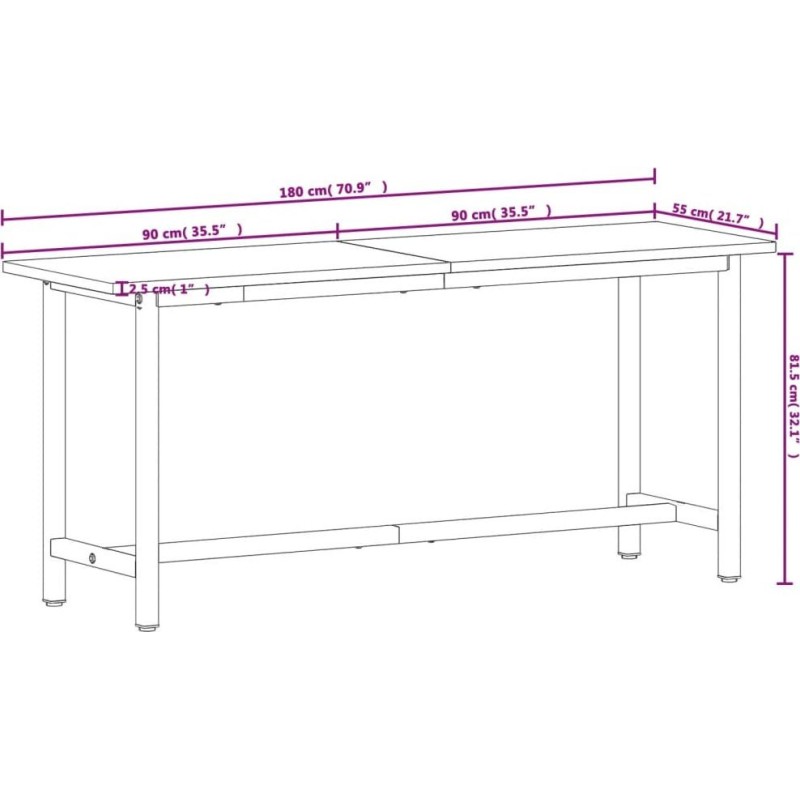 vidaXL Arbeitstisch, 180 x 55 x 81,5 cm, massives Buchenholz und Metall