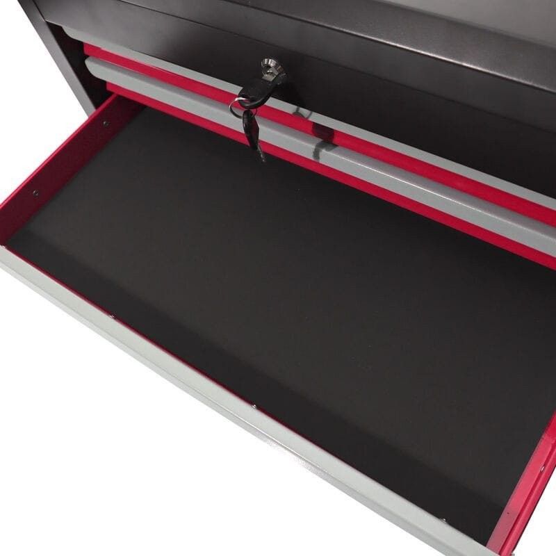 • Durchdachte Aufbewahrungslösung – 2 breite Schubladen (51 cm) und ein geräumiges, abschließbares Fach bieten Platz für all Ihre Werkzeuge.