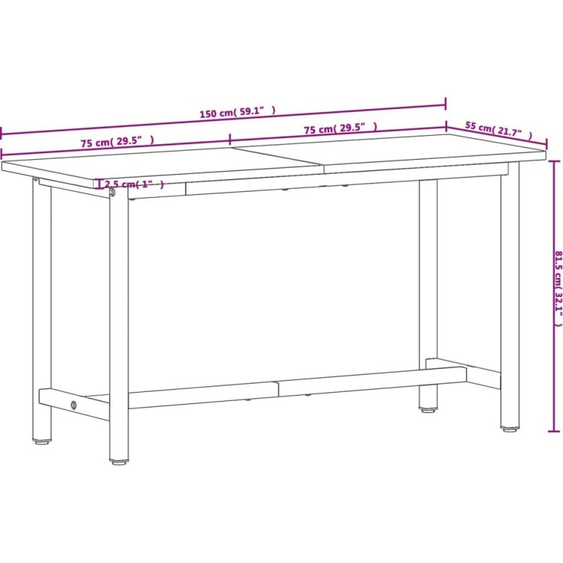 vidaXL Arbeitstisch, 150 x 55 x 81,5 cm, massives Buchenholz und Metall