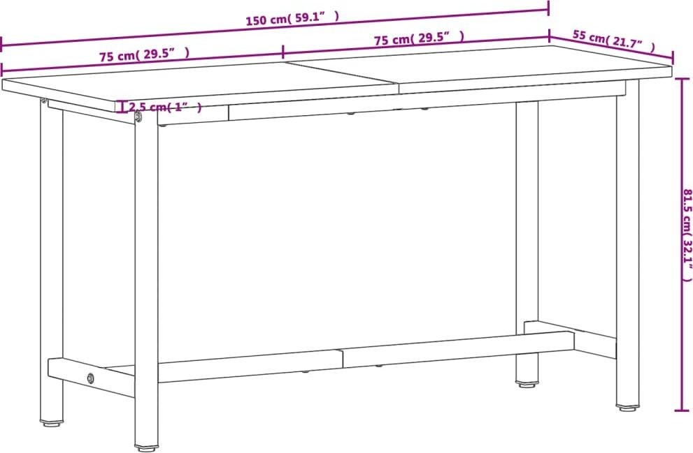 • Gesamtmaße: 150 x 55 x 81,5 cm (L x B x H)