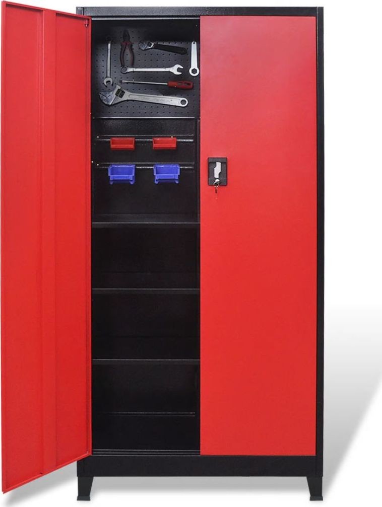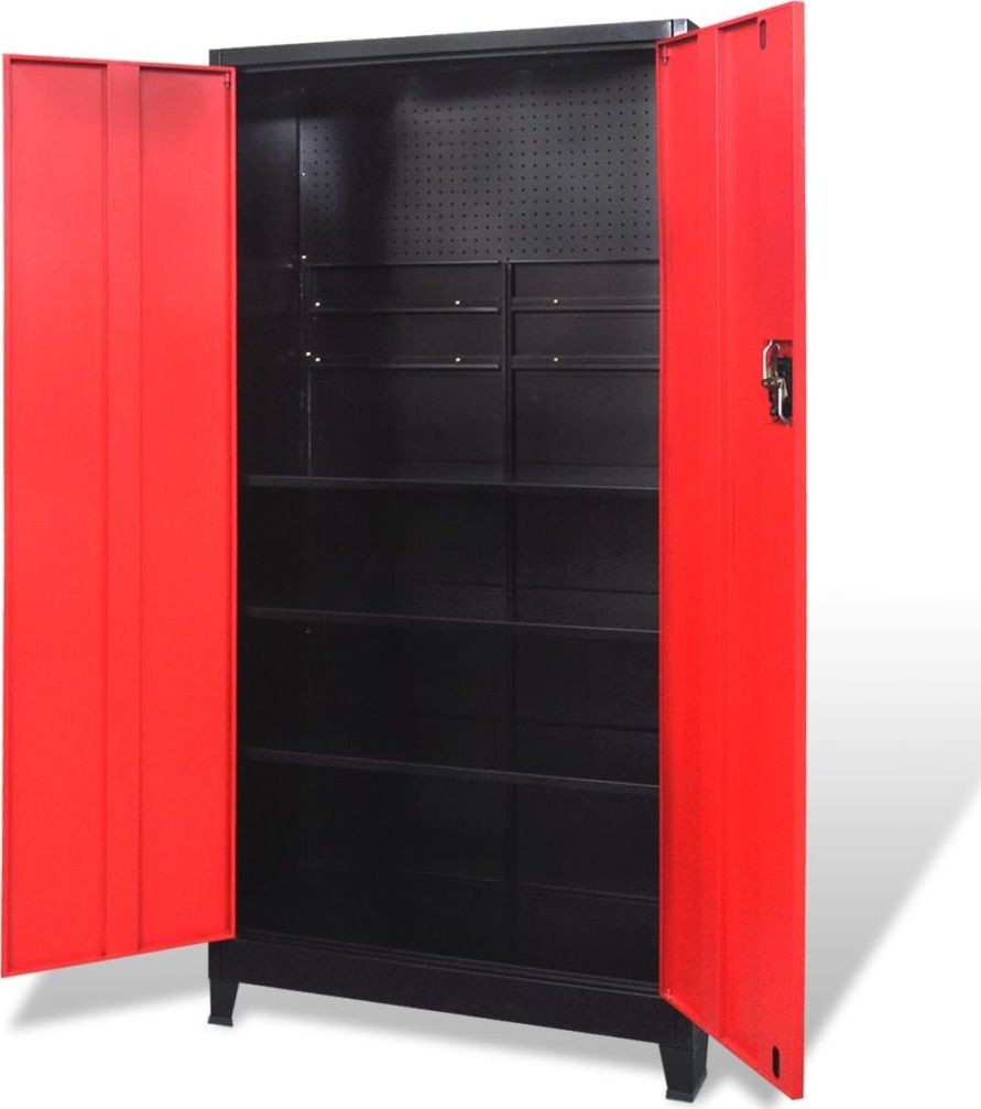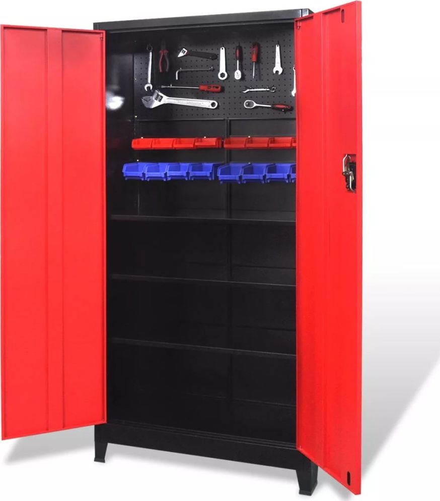 vidaXL Werkzeugschrank, 2 Türen, Stahl, 90 x 40 x 180 cm, schwarz-rot
