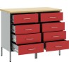 • Die Arbeitsplatte in Holzoptik verleiht dem Schrank Eleganz und passt perfekt in jeden Garagen- oder Werkstattbereich.