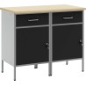 Dieser industrielle Arbeitsschrank mit Schubladen und Türen ist genau das, was du in deiner Werkstatt, deinem Garagen oder deinem Büro brauchst. Seine schwarz-graue Farbe verleiht ihm einen modernen Look, und die robuste Konstruktion aus Stahl und Holzwerkstoffen verbindet Stil mit Funktionalität.
