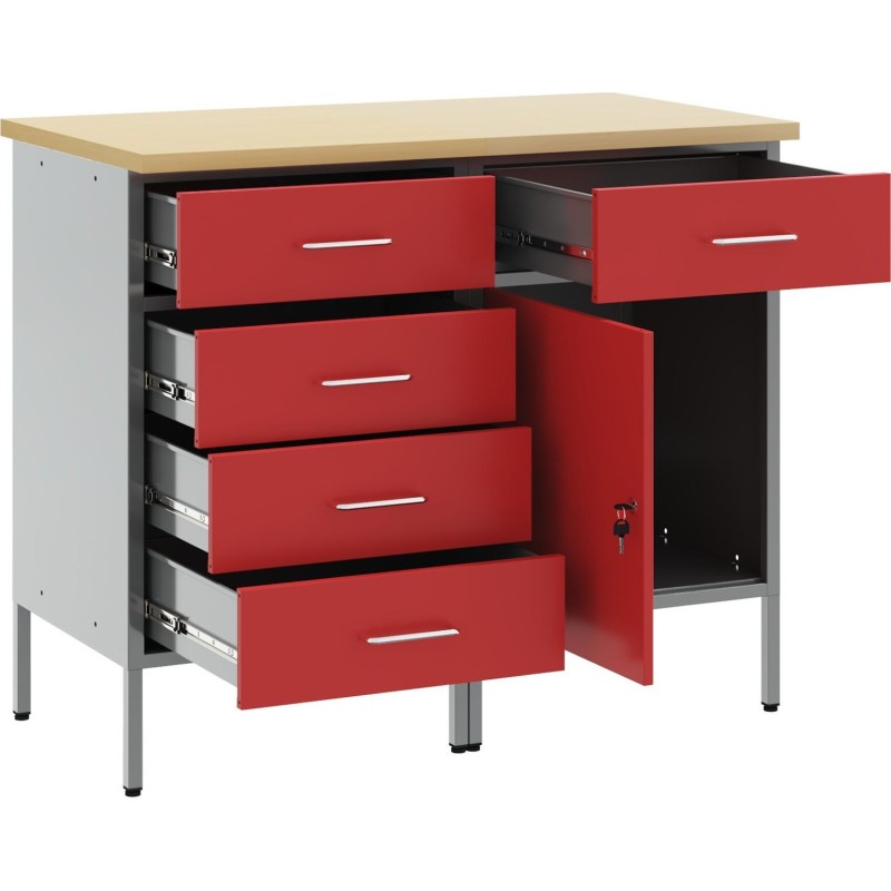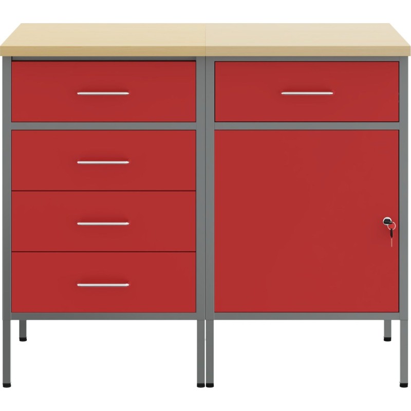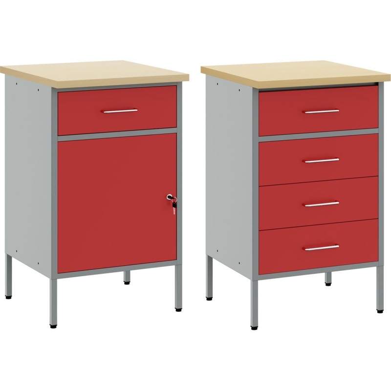 Dieses Set aus Stahl-Werkzeugschränken ist ein absolutes Must-have für alle, die sich die Arbeit erleichtern möchten. Mit den Maßen 50 x 55 x 85 cm sind diese robusten Schränke in Rot-Grau eine hervorragende Wahl, die gut aussieht und deiner Werkstatt einen modernen Akzent verleiht.