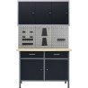 Dieses Set besteht aus 1 Arbeitstisch, 3 Wandpaneelen und 1 Wandschrank und bietet eine praktische Aufbewahrungslösung für die Werkstatt oder Garage.