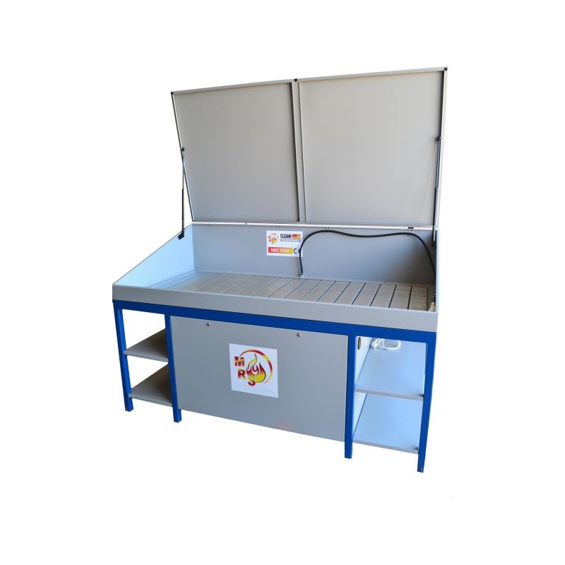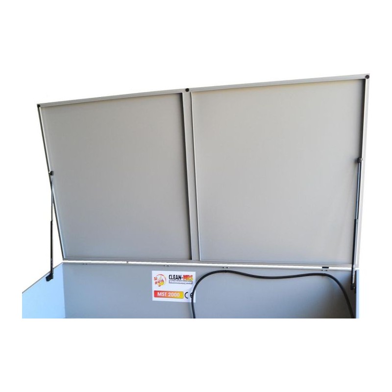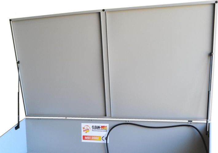 Verschlussabdeckung für die umweltfreundliche Werkstattwaschanlage aus hochwertigem, pulverbeschichtetem Stahl.