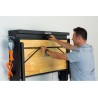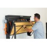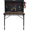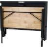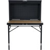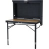 • Möglichkeit, die zusammengeklappte Arbeitsplatte mit einem Vorhängeschloss und einem Riegel zu verschließen