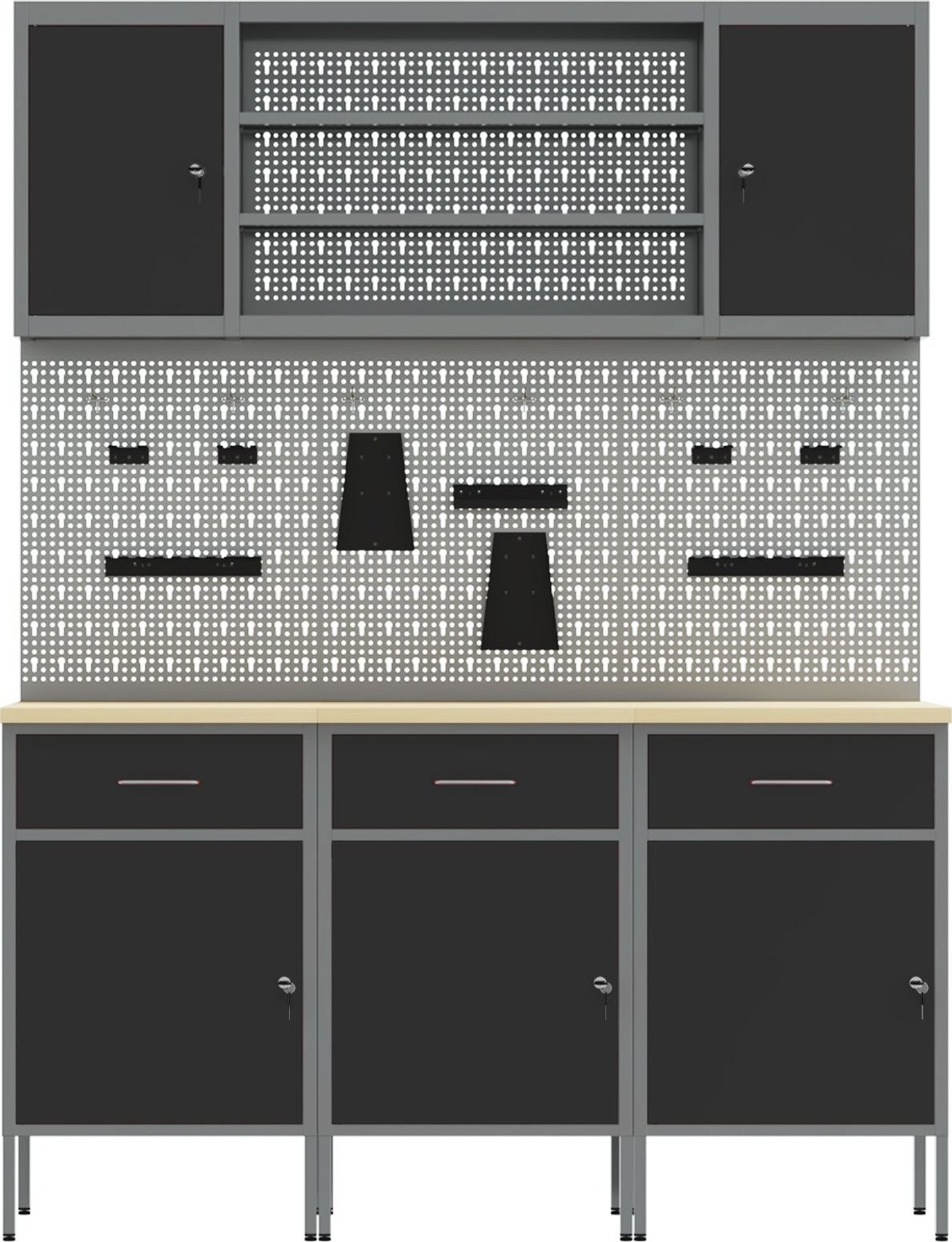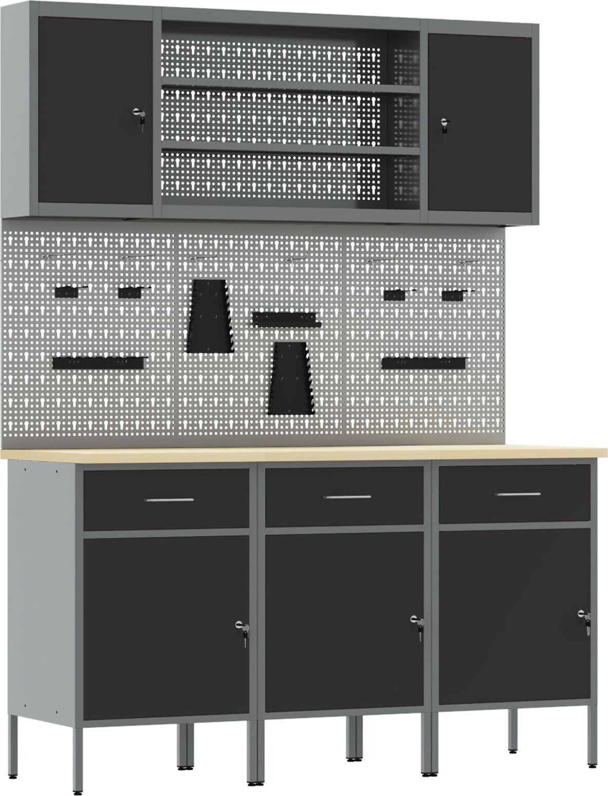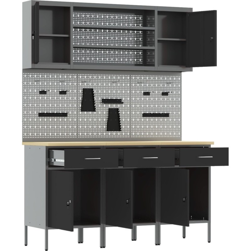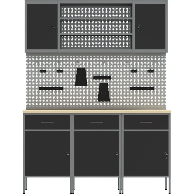 • Sicherheitssystem: Der Schrank verfügt über abschließbare Türen, sodass Ihre Werkzeuge sicher aufbewahrt sind, wenn Sie sie nicht benutzen – das gibt Ihnen Sicherheit, besonders wenn Sie sich den Raum mit anderen teilen.