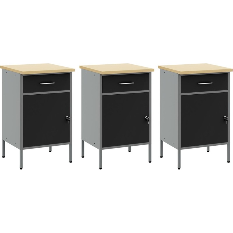vidaXL Set mit 5 großen Arbeitsschränken aus schwarzem Stahl mit verstellbaren Füßen