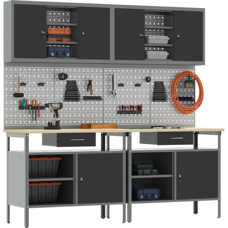 • Lieferumfang: Werkzeugtafel, Halterung, Haken, Schränke