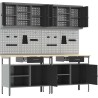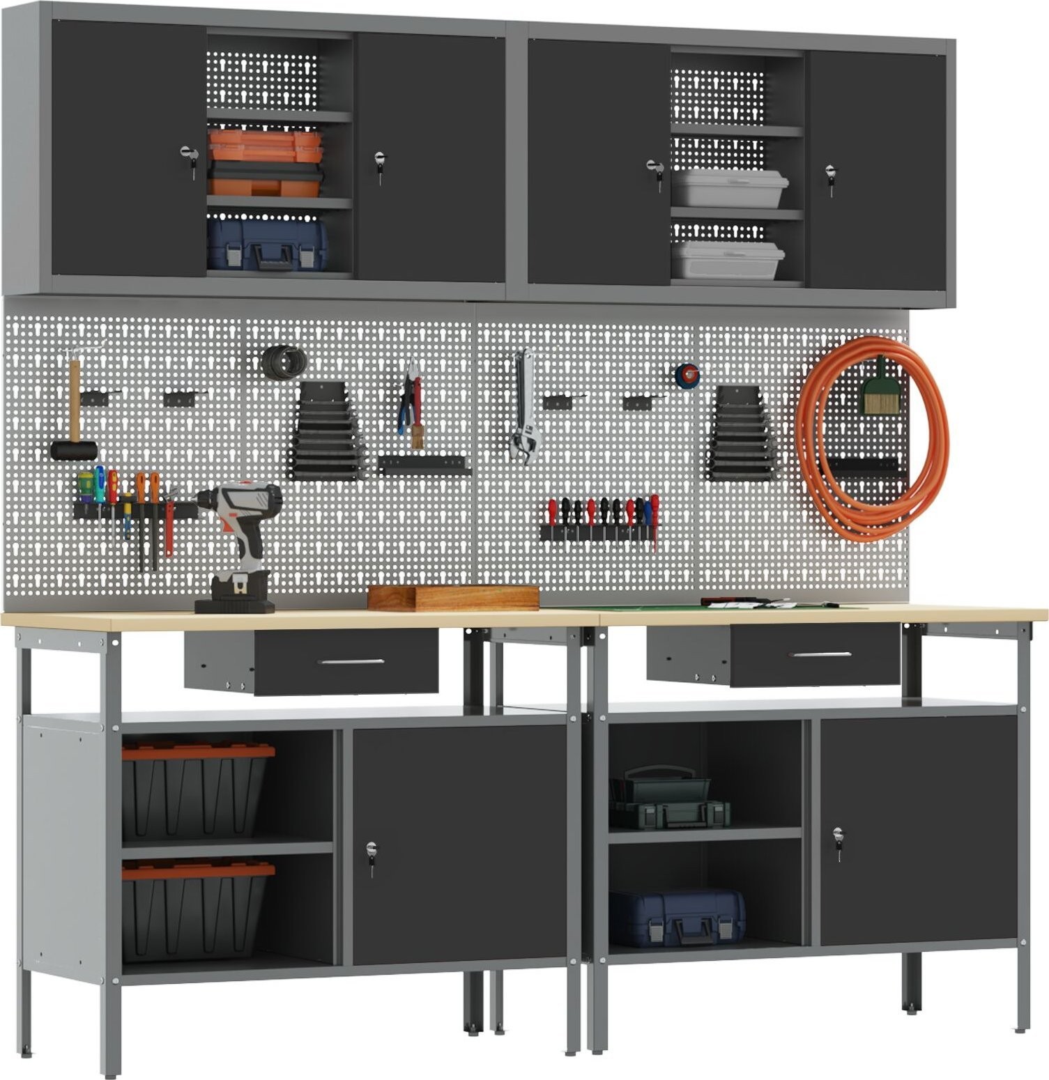 Dieses Set aus Werkzeugtafeln eignet sich ideal, um deinen Arbeitsplatz zu organisieren und unordentliche Bereiche in funktionale Zonen zu verwandeln – perfekt für DIY-Projekte oder professionelle Aufgaben. Das moderne Design in Grau und Schwarz sorgt dafür, dass deine Werkzeuge leicht zugänglich sind, und verleiht deiner Werkstatt oder Garage einen ansprechenden, industriellen Stil.