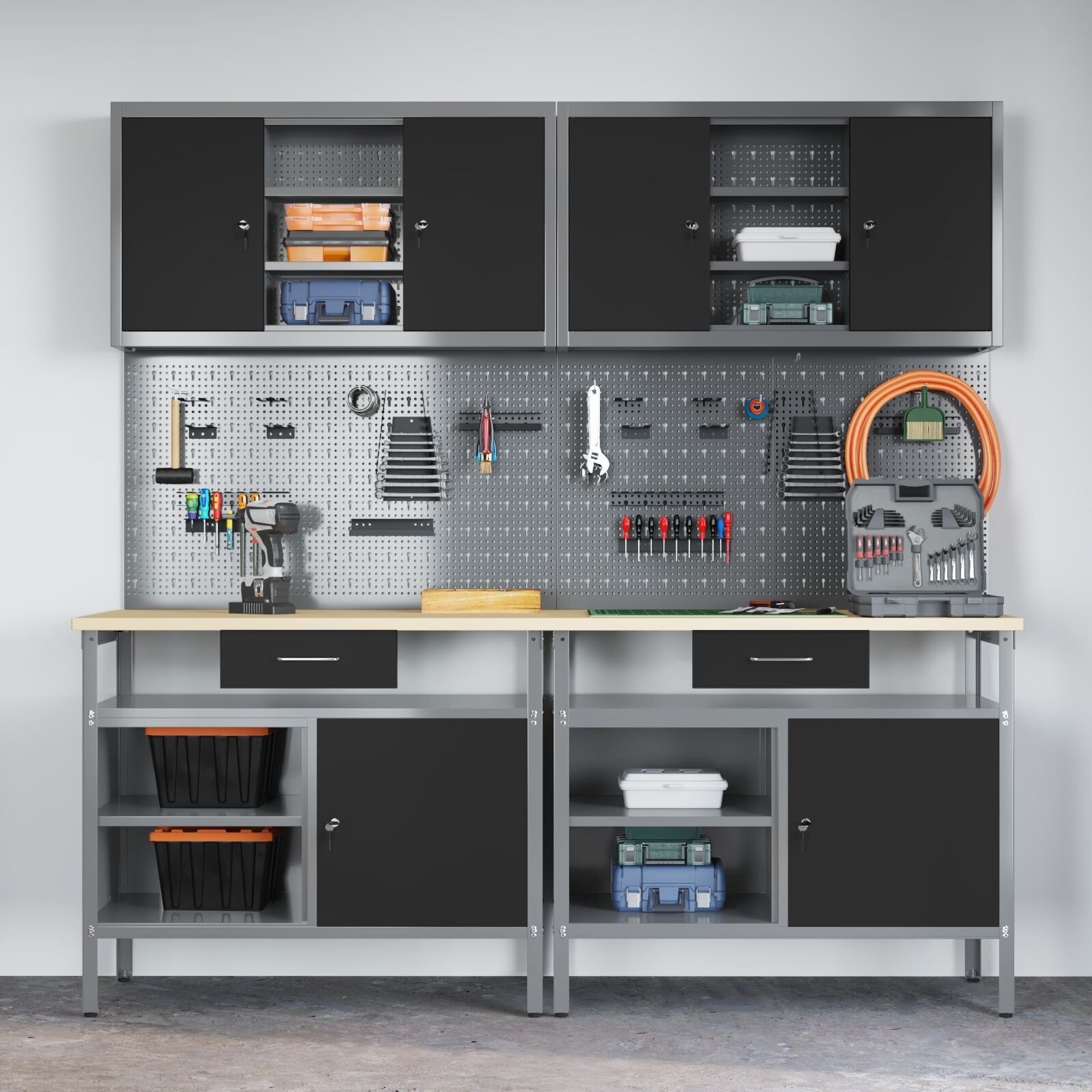 • Funktionales Design: Das Set besteht aus 2 Hakenleisten, 4 Lochplatten und 2 Schränken, was vielfältige Aufbewahrungsmöglichkeiten bietet, die sich Ihren Bedürfnissen anpassen.