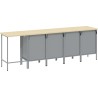 • Robustheit: Hergestellt aus Stahl und Holzwerkstoff, widerstandsfähig gegen verschiedene Bedingungen.