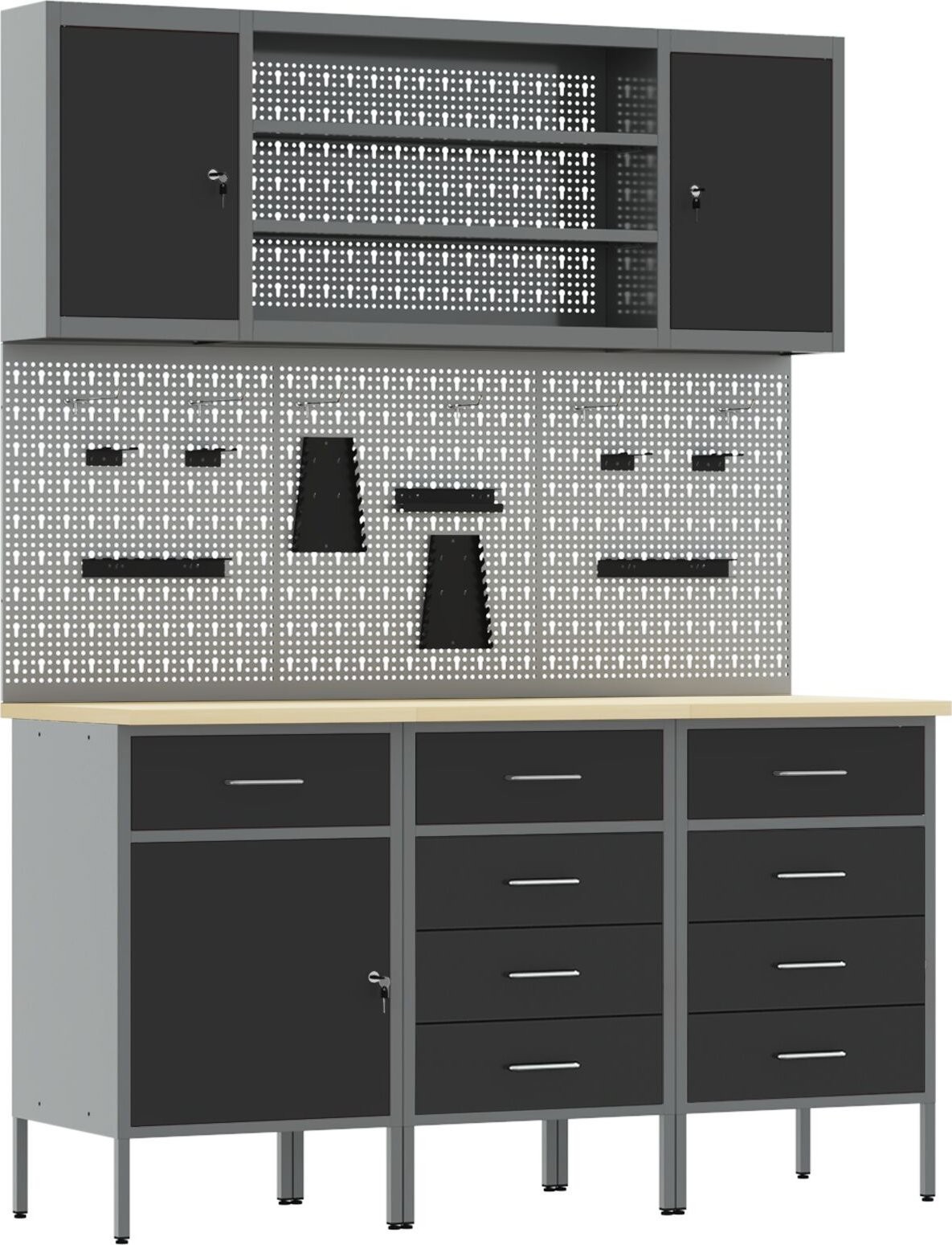 • Sichere Verriegelung: Die abschließbaren Türen sorgen für ein beruhigendes Gefühl und schützen Ihre Werkzeuge, wenn Sie sich entfernen.