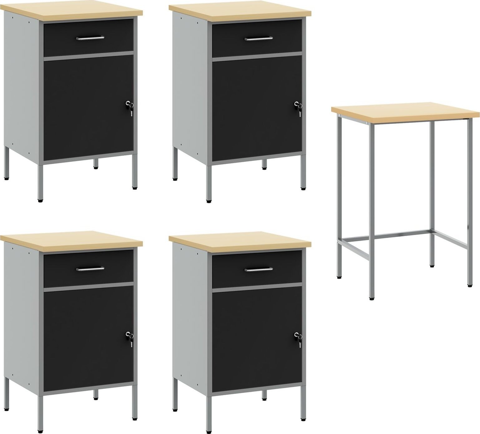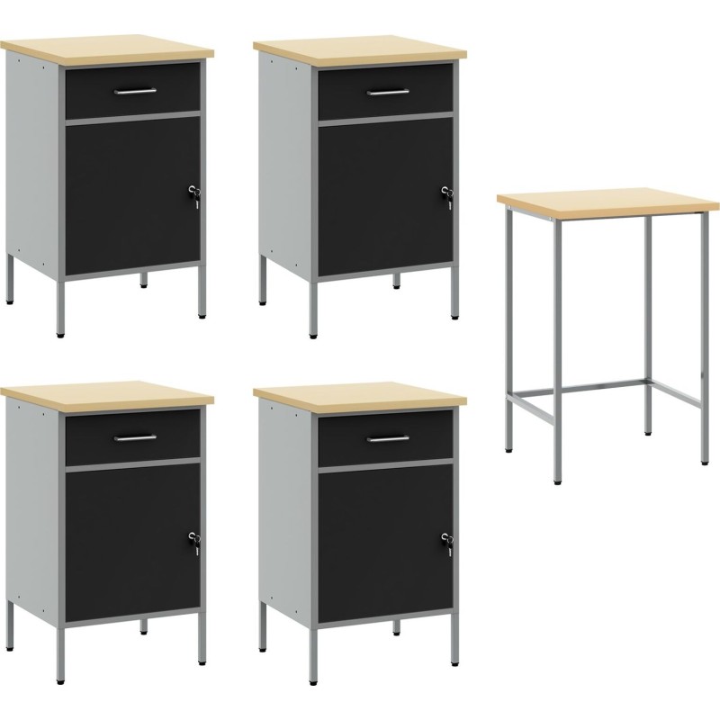 vidaXL Set 5 Schwarz, Stahlgrau, Holzwerkstoff Groß