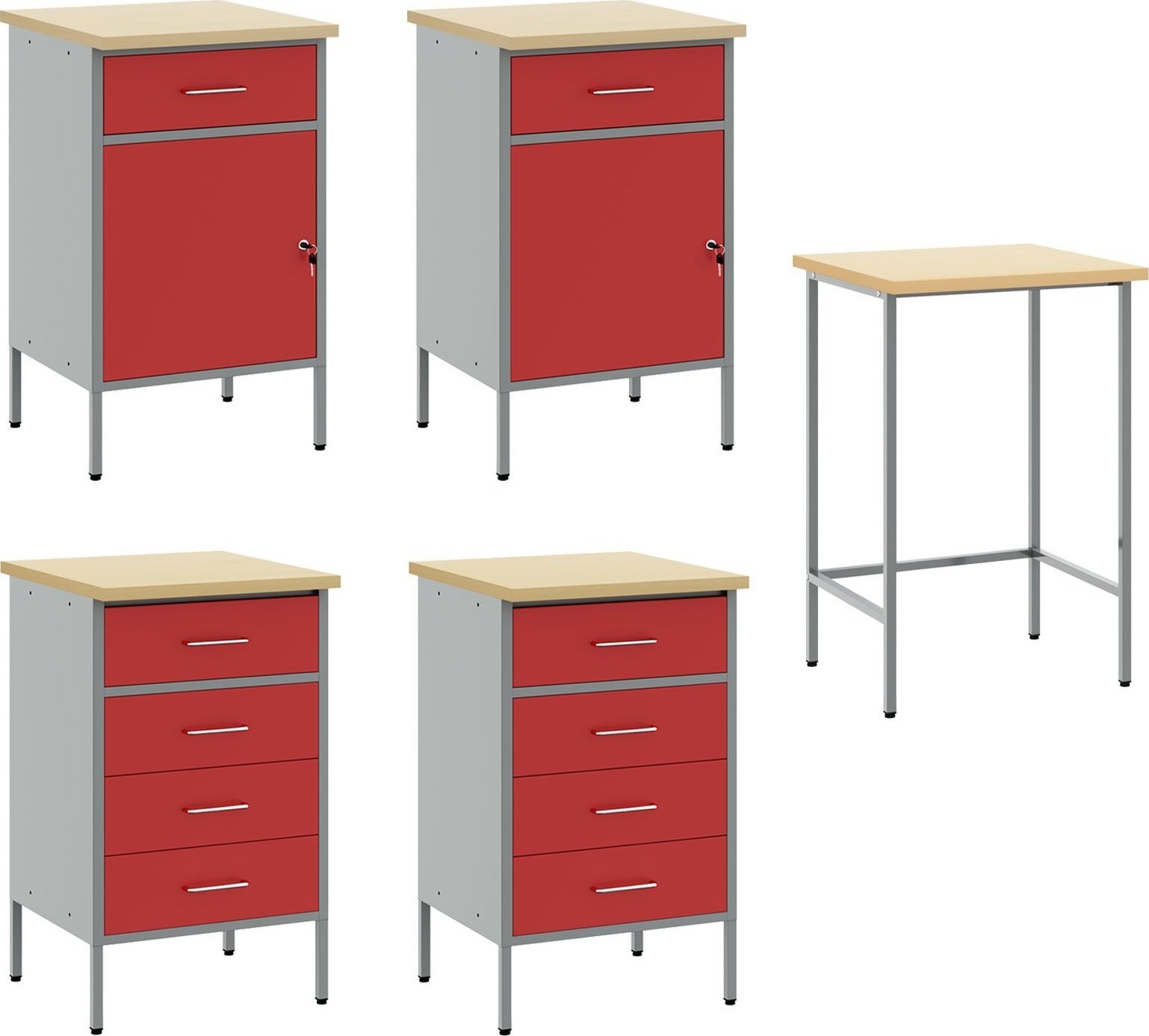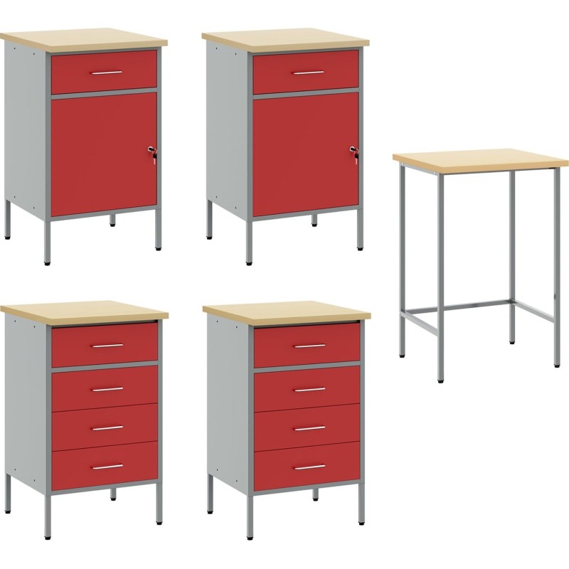 vidaXL Set mit 5 großen rechteckigen Arbeitsschränken aus rotem Stahl