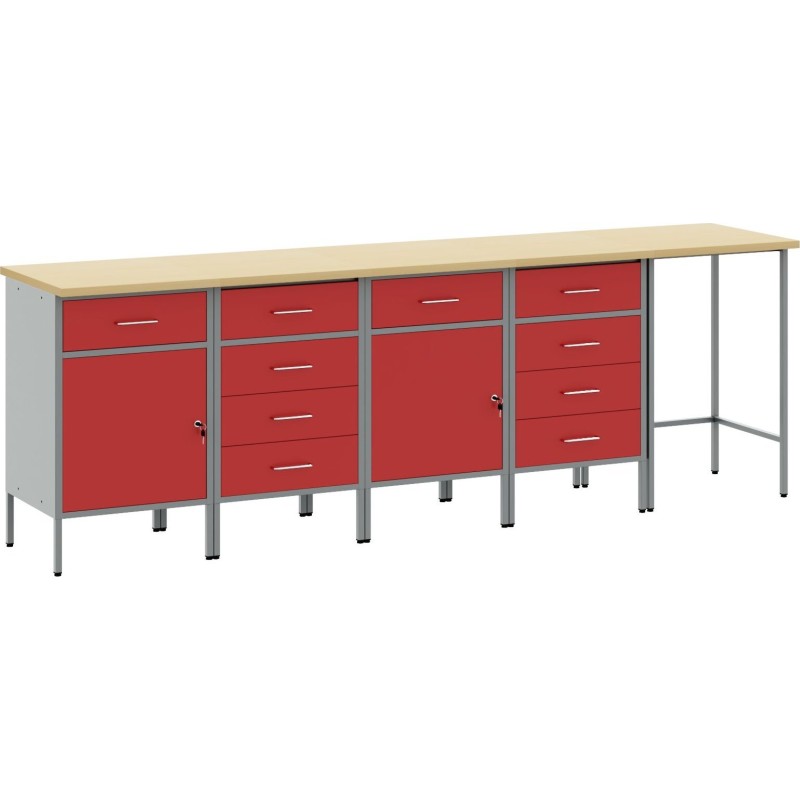 Dieser industrielle Arbeitsschrank vergrößert den Arbeitsbereich dank seiner soliden Konstruktion und seines ansprechenden Designs. Er eignet sich ideal für Garagen und Werkstätten, ist aus Stahl und Holzwerkstoff gefertigt und vereint Funktionalität mit Ästhetik, wodurch er sowohl praktisch als auch stilvoll ist.