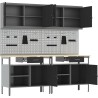 Dieses Set aus schlanken Werkzeugpaneelen im Industrial-Stil vereint Funktionalität mit Ästhetik, was es zu einem unverzichtbaren Bestandteil jeder Werkstatt oder jedes Garagens macht. In seiner grau-schwarzen Farbgebung bietet es reichlich Stauraum und sorgt gleichzeitig für Ordnung – ideal für alle, vom Hobbyhandwerker bis zum Profi.