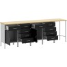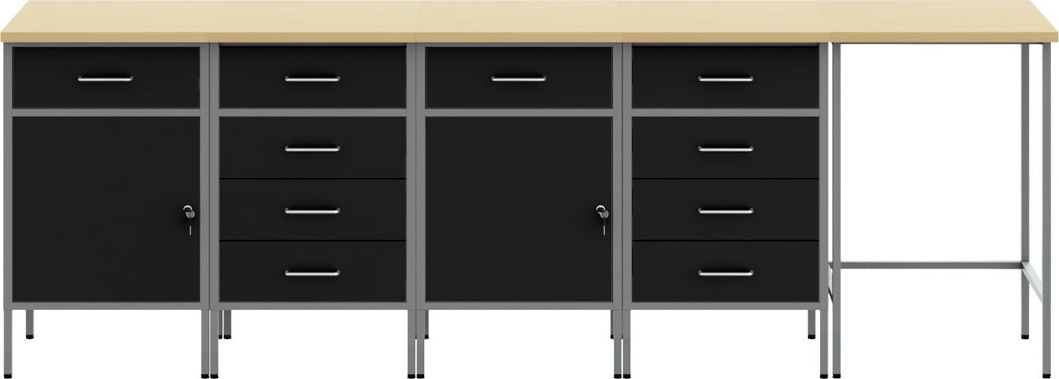 Dieser Arbeitsschrank vereint Funktionalität mit einem eleganten Industrial-Stil. Er eignet sich ideal für Garagen und Werkstätten und besticht durch ein robustes Design, das sich für verschiedene Werkzeuge eignet und in mattem Schwarz und Grautönen hervorragend zur Geltung kommt.