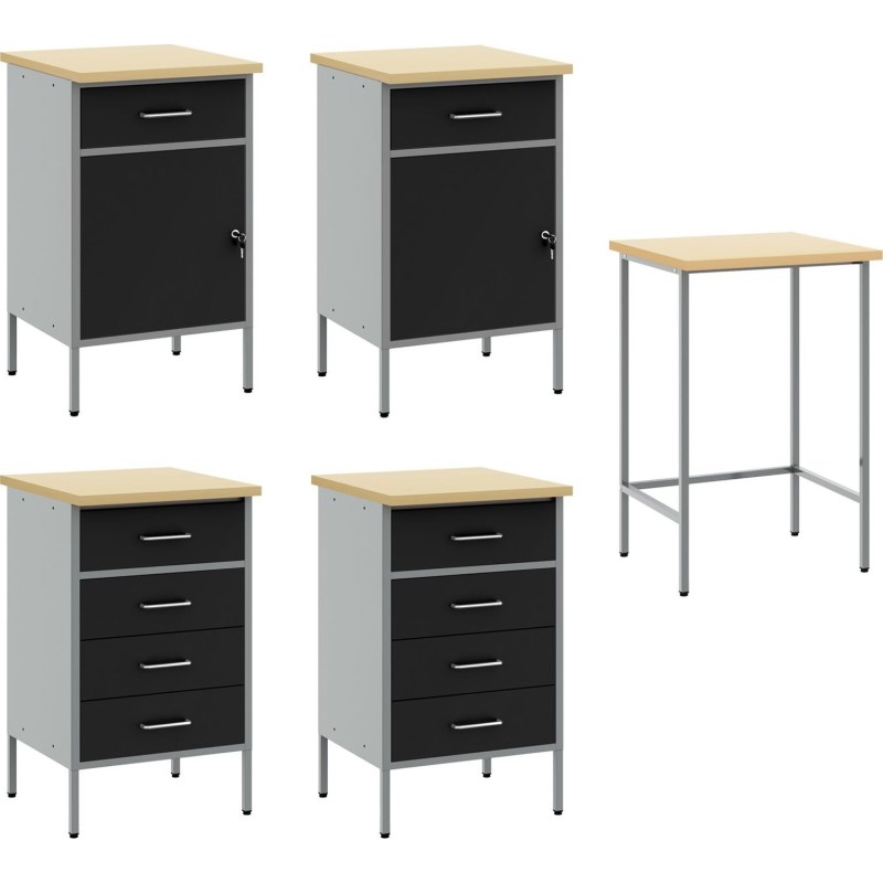 vidaXL Set mit 5 großen, höhenverstellbaren Arbeitsschränken aus schwarzem Stahl
