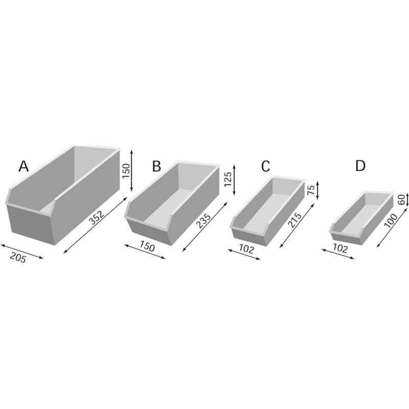 Abmessungen Behälter A B x T x H (mm): 205 x 352 x 150