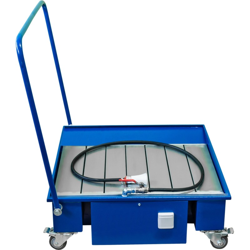 Die Werkstattwaschanlage wurde aus hochwertigen Stahlmaterialien gefertigt und mit einer dauerhaften, korrosionsbeständigen Pulverbeschichtung versehen.