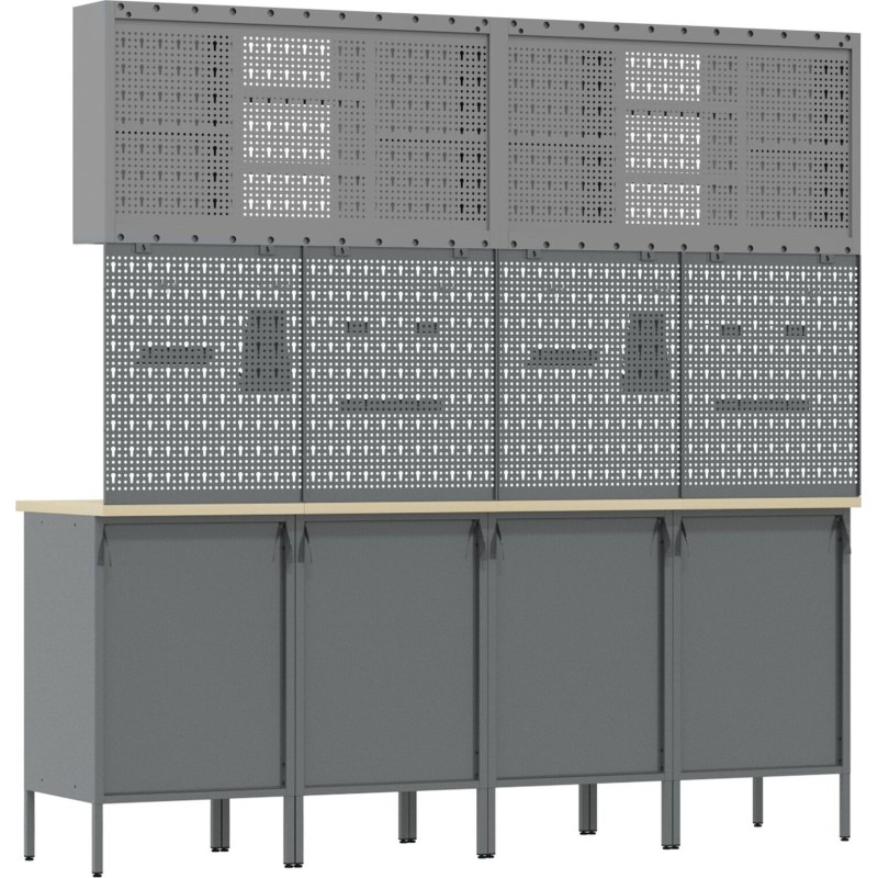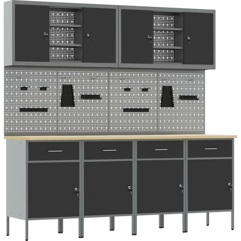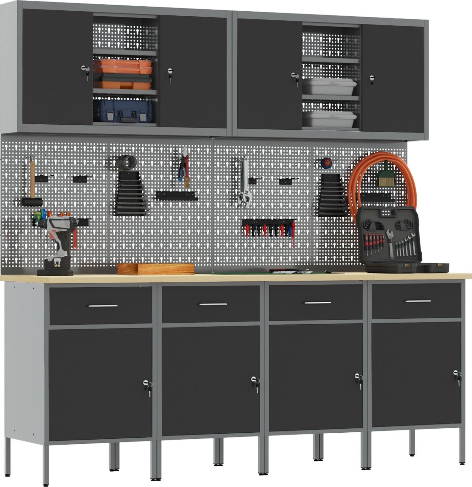 Dieser industrielle Arbeitsschrank aus robustem Stahl und Holzwerkstoffen bietet eine praktische und stilvolle Aufbewahrungslösung, ideal für die Garage oder die Werkstatt. Mit seinem coolen Design in Schwarz und Grau wurde er so konzipiert, dass er die Funktionalität erhöht und an jedem Arbeitsplatz gut zur Geltung kommt.
