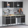 Das Set besteht aus 10 Elementen, darunter eine große Schublade auf leichtgängigen Kugelführungen sowie abschließbare Schränke, die eine sichere Aufbewahrung von Werkzeugen und Materialien ermöglichen. Dank der durchdachten Raumaufteilung findet jeder Heimwerker mühelos das benötigte Zubehör.
