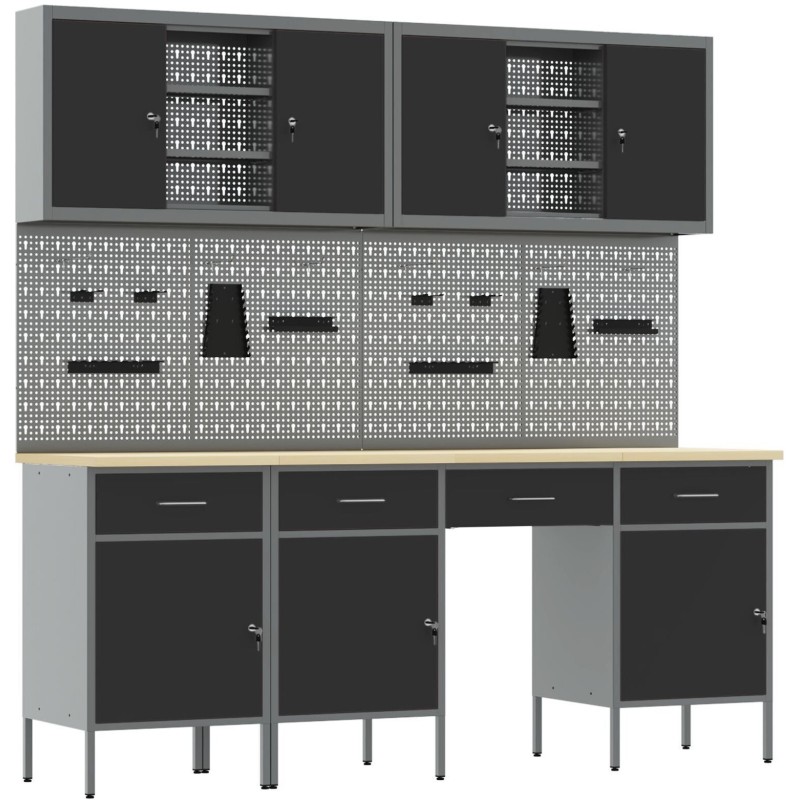 • Lieferumfang: 4x Schrank + 4x Lochwand + 2x Werkzeugschrank
