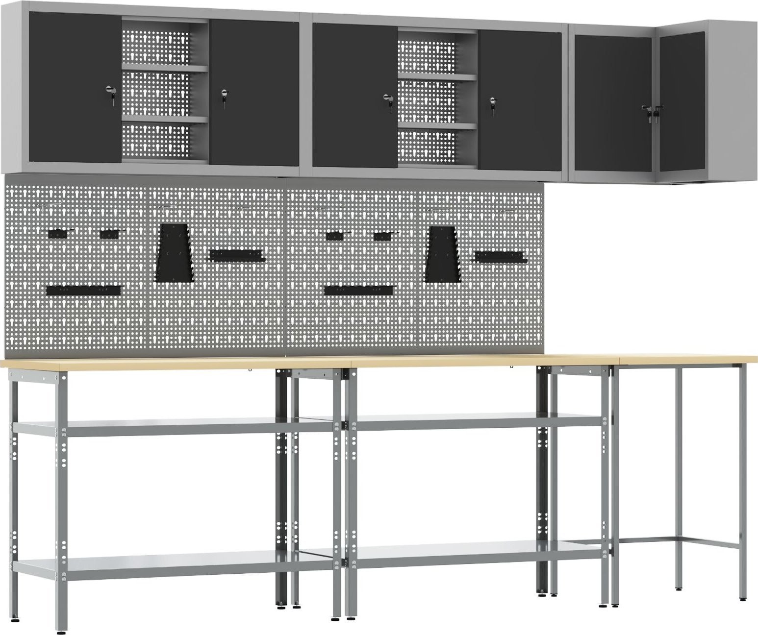 vidaXL Set mit 9 mittelgroßen, verstellbaren Werkbänken in Stahlgrau