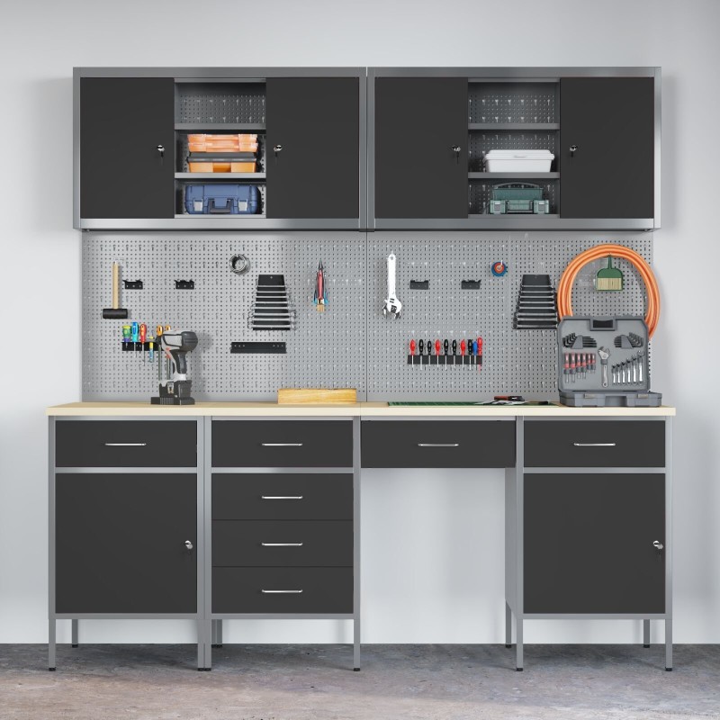 • Lieferumfang: Arbeitsschrank, Werkzeugtafel, Tafeln mit Haken, Zubehör