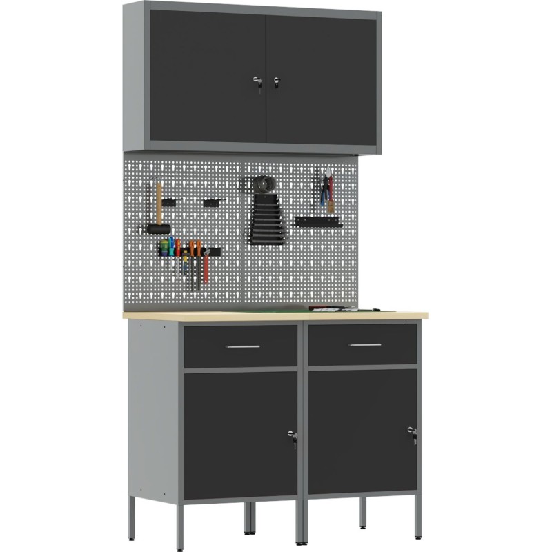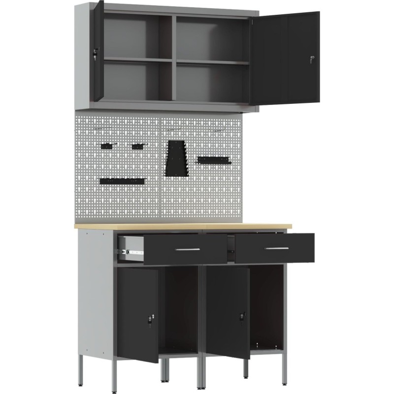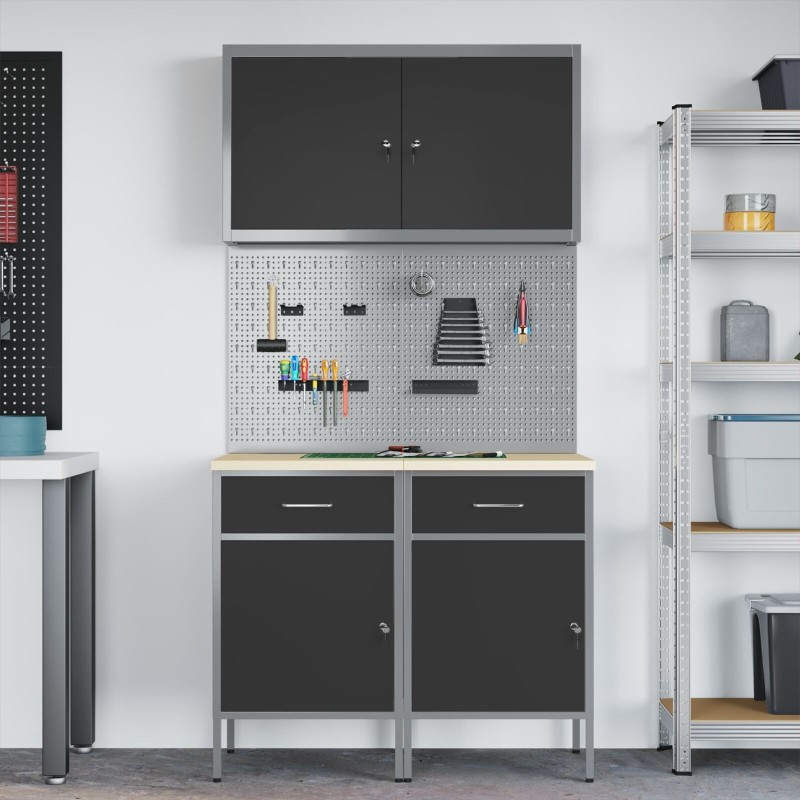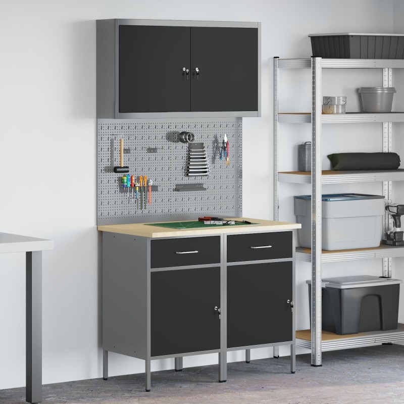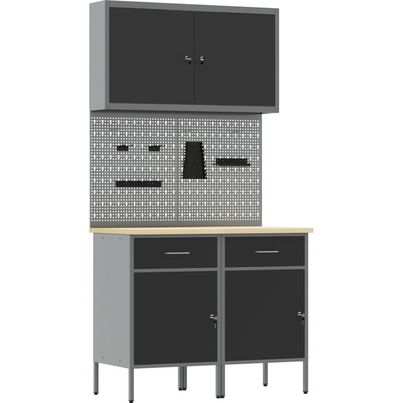 • Lieferumfang: 2x Werkzeugpaneel, 2x Schrank, 1x Arbeitstisch