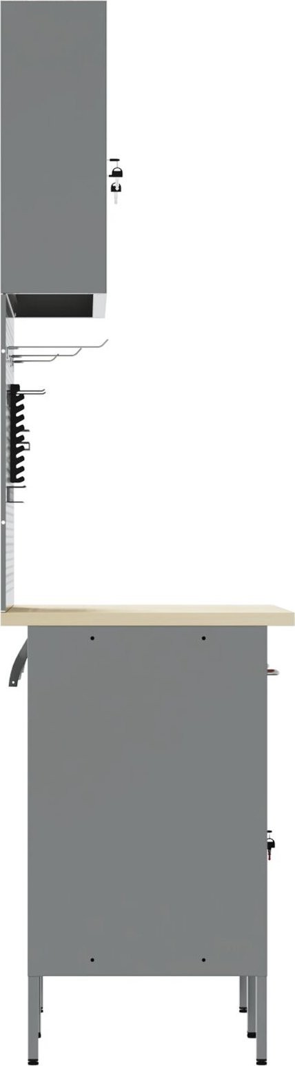 • Robuste Konstruktion: Der Schrank besteht aus strapazierfähigem Stahl und Holzwerkstoff, was ihm Langlebigkeit und Widerstandsfähigkeit bei intensiver Nutzung garantiert.