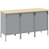 Dieser Arbeitsschrank im Industrial-Stil wurde speziell für Menschen entwickelt, die bei der Arbeit Wert auf Langlebigkeit und Funktionalität legen. Er eignet sich ideal für die Garage oder die Werkstatt und verfügt über eine robuste Stahlkonstruktion sowie eine stilvolle Oberfläche in Holzoptik, was ihn sowohl praktisch als auch ästhetisch macht. Er ist die perfekte Lösung, um Werkzeuge und Materialien zu organisieren.