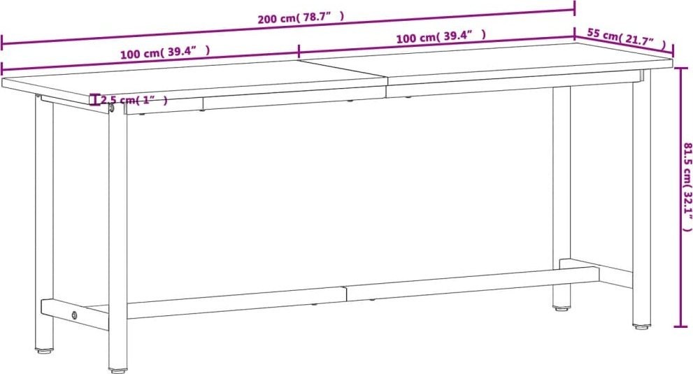 • Gesamtmaße: 200 x 55 x 81,5 cm (L x B x H)