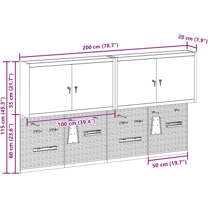 • Lieferumfang: 2 x Werkzeugschränke, 4 x Lochplatten