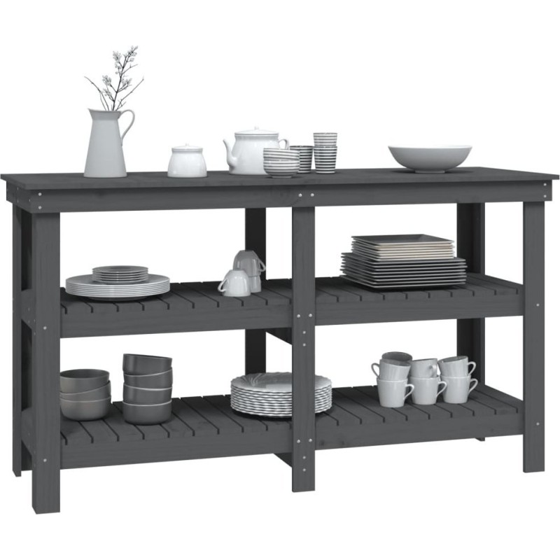 vidaXL vidaXL Arbeitstisch, grau, 142,5 x 50 x 80 cm, massives Kiefernholz